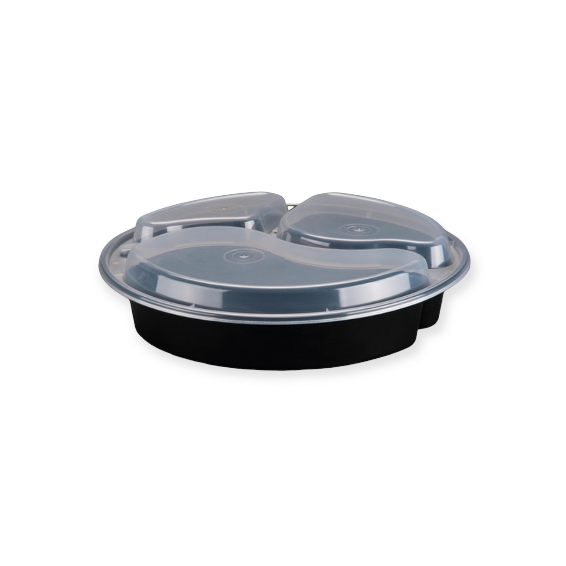 3 Compartment 33oz. Black Round Microwavable Container with Clear Lid 150 Sets